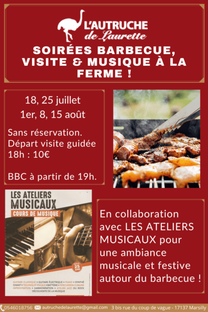 07/12/2024Nous serons présents ce dimanche au Marché de Noël de Pons ainsi qu’au Marché de Noël du Château de la Roche Courbon ! 🎉✨ 🎁 Au programme : Des produits fermiers 100% locaux, frais et délicieux, à base d’autruches Des […]