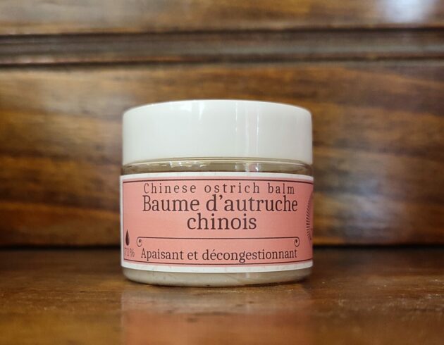 Baume apaisant et décongestionnant composée à 71% d’huile d’autruche (oméga 3-6-9).