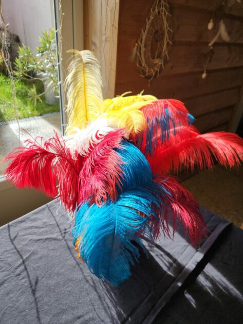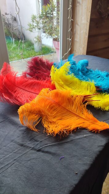 Accueil » Boutique » Plumes » Grande Plume teintée de 50 cm Grande Plume teintée de 50 cm 10.00€ quantité de Grande Plume teintée de 50 cm Ajouter au panier UGS : 3768 Catégorie : Plumes Description Description Plumes d'autruche teintées de 50 cm ou plus. Différents coloris vous sont proposés : Bleu foncé Jaune Rouge Bordeaux Rouge Orange Informez nous de votre choix de couleur en commentaire lors de votre commande. Produits similaires Plume Blanche 6.00€ Ajouter au panier Plume Noire 3.00€ Ajouter au panier Plumeau coloré de 50cm 20.00€ Ajouter au panier Plumeau noir 35-40cm 10.00€ Ajouter au panier