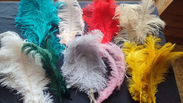 Plumes teintées de 45 cm de long maximum de différents coloris.